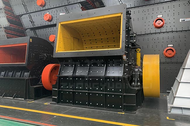 重錘破由機體、襯板、上機殼、錘頭、轉(zhuǎn)子軸、破碎腔、活動襯板等部件組成。其中活動襯板位于出料口處,通過調(diào)節(jié)活動襯板可以控制出料粒度的大小。