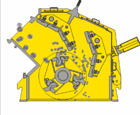 物料進(jìn)入破碎機(jī)后,先受到隨轉(zhuǎn)子高速旋轉(zhuǎn)的錘頭的沖擊作用而破碎,被破碎的物料同時從錘頭處獲得動能,高速度地沖向破碎板。受到次破碎,反復(fù)進(jìn)行破碎,受到錘頭的剪切、擠壓、研磨以及物料與物料之間的相互作用進(jìn)一步破碎,終從出料口排出。