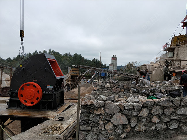 該款重錘破抗壓受力性能不大于200MPa,應(yīng)用物料200好幾種,常見的有石灰?guī)r、青石、煤矸石、大理石、磚渣、商砼塊等,粉碎物料不用初步破碎以及二破,可一次性將粒度在1000毫米的大巖石粉碎到50毫米以下,機(jī)械占有能耗較低、投資少的亮點(diǎn)。請看一個(gè)真實(shí)生產(chǎn)案例: