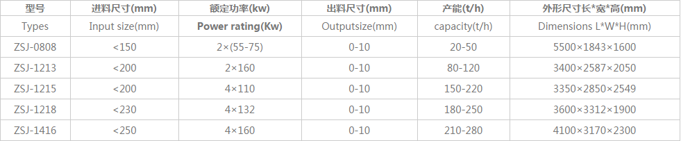 ZSJ雙轉(zhuǎn)子制砂機參數(shù)規(guī)格: