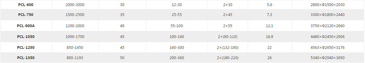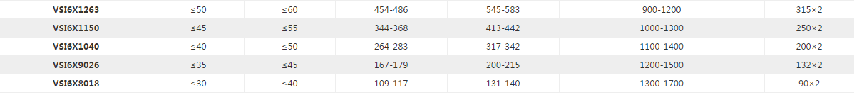 PCL沖擊式制砂機參數(shù)規(guī)格: