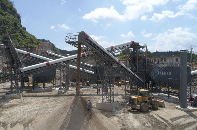 日產(chǎn)5000方石料生產(chǎn)線設(shè)備封閉設(shè)計,配有除塵器,生產(chǎn)粉塵小