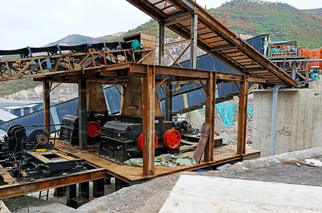 方案三:振動給料機+重錘式破碎機+錘式細碎機2臺+雙轉(zhuǎn)子制砂機4臺+振動篩+輸送機;