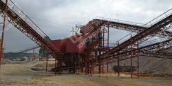 從生產(chǎn)現(xiàn)場圖可以看到,三臺(tái)振動(dòng)篩并駕齊驅(qū),同時(shí)進(jìn)行篩分,可以快速進(jìn)行破碎物料粒度的篩分,從而形成短時(shí)間、率、產(chǎn)量高的大中型砂石骨料生產(chǎn)線。