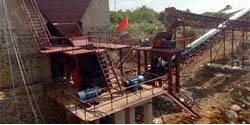 如圖所示,該碎石生產(chǎn)線總體上來說分為兩部分,一部分出普通成品料,一部分出砂石料,由PCZ1820錘式破碎機(jī)直接破碎以后篩分出來的料就是普通成品料,不滿足成品料粒度要求的物料被輸送到PC1220整形機(jī)中進(jìn)行進(jìn)一步加工以后篩分出來的成品料是砂石料,能滿足用戶的不同需求。