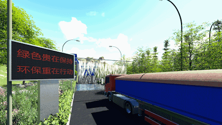 2.6石料裝車完畢后經(jīng)過(guò)自動(dòng)噴淋裝置灑水噴淋,面降塵;出廠前對(duì)運(yùn)輸車輛進(jìn)行篷布遮蓋檢查和輪胎清洗,運(yùn)輸環(huán)節(jié)源頭抑塵。