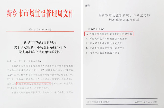 會議宣讀了河南省、新鄉(xiāng)市局小個專黨建工作聯(lián)系點(diǎn)、點(diǎn)和小個專黨支部化試點(diǎn)單位名單,河南中譽(yù)鼎力智能裝備有限公司黨支部成功入選新鄉(xiāng)市市場監(jiān)管系統(tǒng)“小個專黨支部化試點(diǎn)單位”名單!