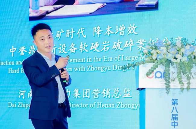 大礦時代來臨,砂石行業(yè)高質量發(fā)展對裝備產品的要求也越來越高!12月7日上午,在適用技術和裝備論壇,中譽鼎力營銷總監(jiān)代志鵬以《大礦時代 降本增效 中譽鼎力新設備軟硬巖破碎案例分享》為主題,向與會代表介紹了中譽鼎力近年來結合市場變化與客戶需求,不斷進行設備創(chuàng)新、工藝創(chuàng)新、應用創(chuàng)新,推出了DLHGC 臥式旋回破碎機和DLVSI 立軸沖擊式破碎機等破碎新品,并在市場上得到成功應用,力求在生產效率、節(jié)能減排、運營維護等方面,為更多用戶解決難題,創(chuàng)造更大價值。