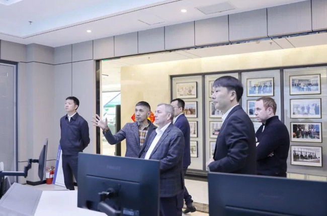 考察團先來到綠色建材大數(shù)據中心,了解中譽鼎力自主研發(fā)的礦山智能化管理系統(tǒng)和砂石生產3D可視化運維。馬馬德什市長伊萬諾夫表示,這樣的礦山生產管理方式和系統(tǒng)平臺,值得在馬馬德什市推廣,提高當?shù)亟ú漠a業(yè)的管理效率和效果。