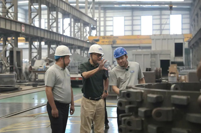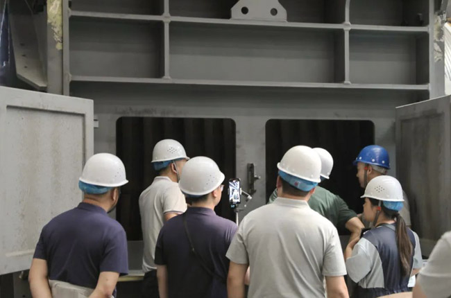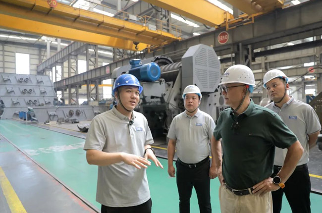 中譽鼎力集團副董事長馬鈺博、技術總監(jiān)劉海淘在智能化車間為砂石骨料網(wǎng)考察團成員一一介紹了集團主營產(chǎn)品及其制造工藝,并對硬巖設備代表產(chǎn)品臥式旋回破碎機進行了詳細的講解。