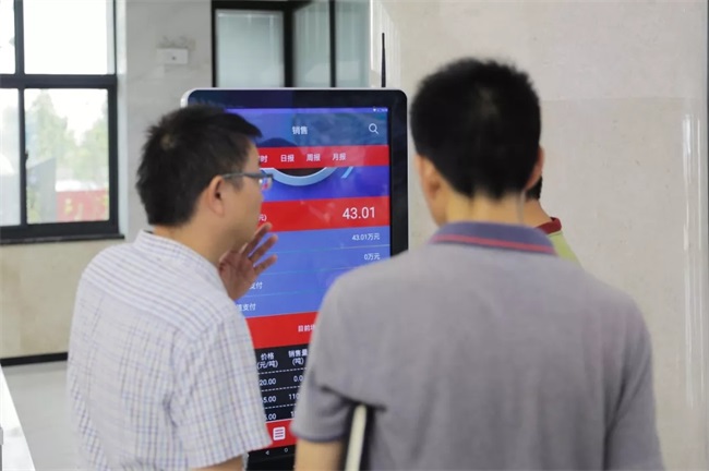 在公司智能化展示,原陽縣考察團(tuán)導(dǎo)一同觀看了中譽(yù)鼎力企業(yè)宣傳片,張治民董事長為大家詳細(xì)講解了中譽(yù)鼎力五位一體循環(huán)建材產(chǎn)業(yè)園項(xiàng)目,并現(xiàn)場(chǎng)演示了由中譽(yù)鼎力自主研發(fā)的礦山易購APP的具體應(yīng)用操作。
