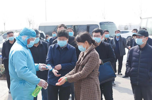 衛(wèi)輝市市長(zhǎng)范士富、衛(wèi)輝市常務(wù)副市長(zhǎng)李志勇、副市長(zhǎng)董岐山等導(dǎo)程陪同指導(dǎo)調(diào)研。中譽(yù)鼎力董事長(zhǎng)張治民詳細(xì)匯報(bào)了中譽(yù)鼎力的疫情防控工作和復(fù)工復(fù)產(chǎn)情況。