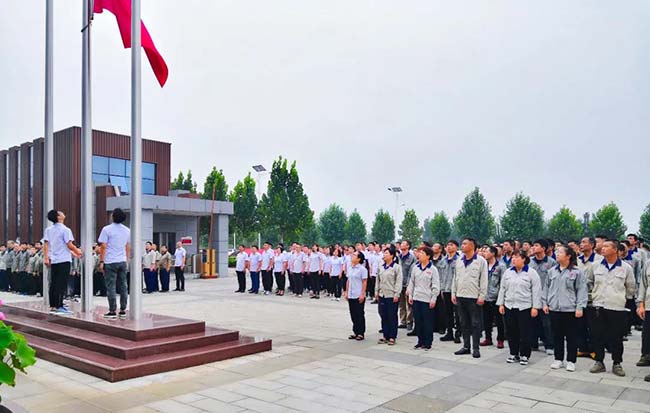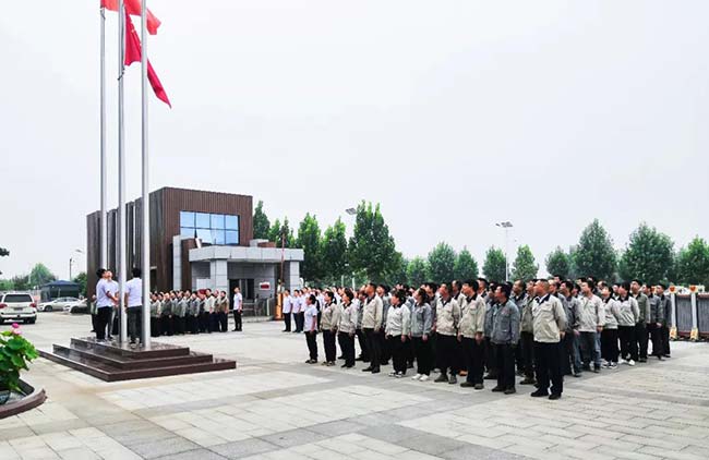 中譽(yù)鼎力智能裝備有限公司行政副總經(jīng)理崔玉清、生產(chǎn)副總經(jīng)理李、營銷副總經(jīng)理王春燕出席活動(dòng)現(xiàn)場(chǎng)。升旗儀式由中譽(yù)鼎力智能裝備公司黨支部書記、企管部長吳澤朋主持。