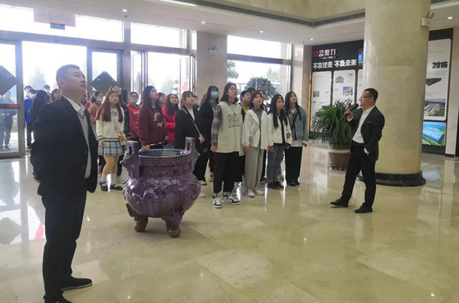 10月19日上午,在新鄉(xiāng)學院經濟學院副院長郭玉杰、衛(wèi)輝市商務局副局長翟愛民的帶下,新鄉(xiāng)學院經濟學院60名大學生到中譽鼎力進行參觀交流。