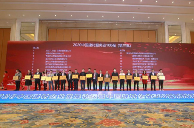 11月5日-6日,由中建筑材料企業(yè)管理協(xié)會舉辦的“2020年中建材企業(yè)發(fā)展論壇暨2020中建材企業(yè)500強系列活動發(fā)布會”在安徽合肥隆重舉行。會上,中譽鼎力軟件科技股份有限公司榮獲“2020中建材服務業(yè)100強”稱號。