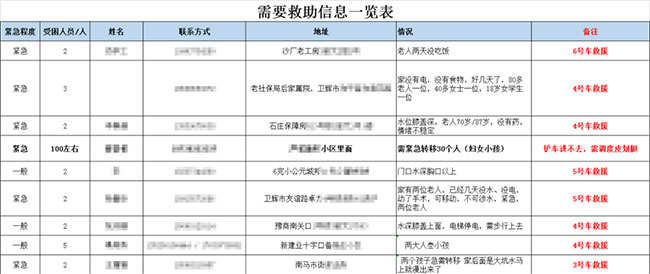 求助者(暫限衛(wèi)輝地區(qū))在平臺填報姓名、聯(lián)系方式、位置和求助信息后,中譽鼎力臨時成立的救援平臺客服統(tǒng)一進行信息收集,按照提報時間聯(lián)系求助者,并根據(jù)緊急情況與公司抗洪救援隊實時溝通,開展及時的救援行動。而外地救援隊也可以在平臺上看到救援信息,直接聯(lián)系進行施救。