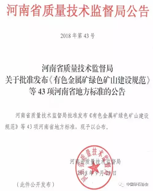 摘要:日前,由河南省土資源廳提出并組織制定的《建筑石料、石材礦綠色礦山建設(shè)規(guī)范》等七項(xiàng)規(guī)范,這標(biāo)志著省級(jí)砂石行業(yè)綠色礦山建設(shè)地方發(fā)布實(shí)施。該2018年12月29日起實(shí)施。