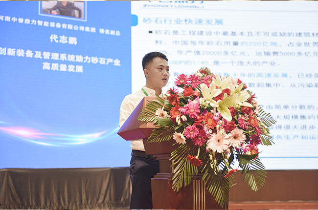 中譽鼎力銷售副總監(jiān)代志鵬以“創(chuàng)新裝備及管理系統(tǒng)助力砂石產(chǎn)業(yè)高質(zhì)量發(fā)展”為主題,就行業(yè)發(fā)展背景、公司創(chuàng)新設(shè)備、轉(zhuǎn)型升級定位和智能管理平臺等內(nèi)容展開精彩演講,與大家進行業(yè)務(wù)分享和交流。