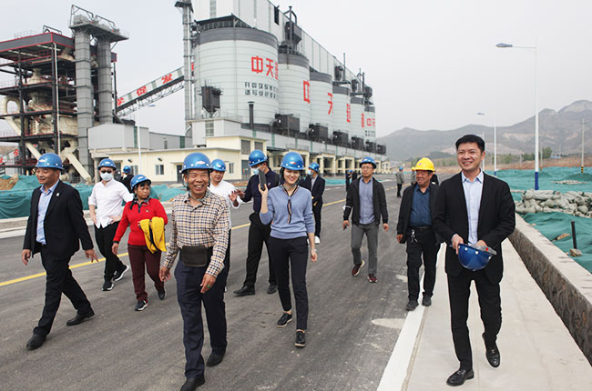 參觀中天建材生產線,了解項目特點及環(huán)保工藝