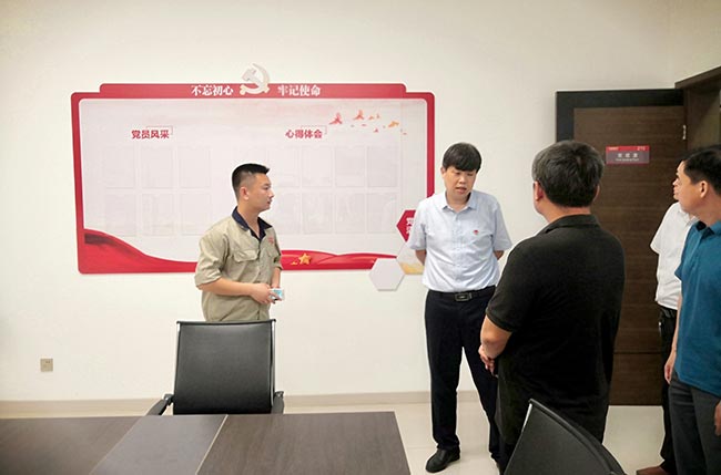 中譽(yù)鼎力黨建指導(dǎo)員王士存、公司行政副總經(jīng)理崔玉清及黨支部書記、企管部部長吳澤朋程陪同,并介紹公司黨建情況。
