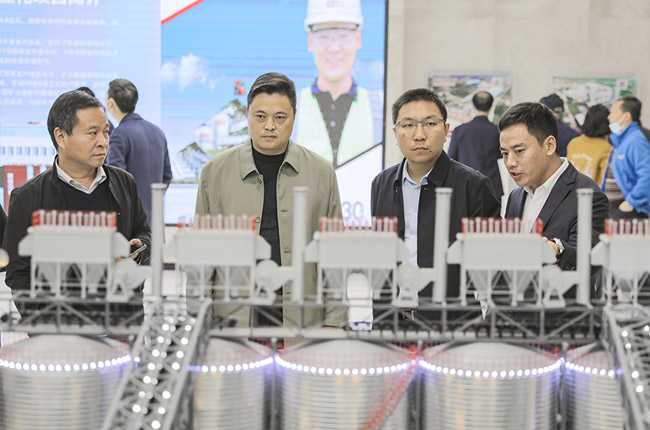 然后,考察團(tuán)一行前往中譽(yù)鼎力投資建設(shè)的多位一體循環(huán)建材產(chǎn)業(yè)園項(xiàng)目——衛(wèi)輝市藍(lán)天環(huán)保材料有限公司“四位一體”大型建材項(xiàng)目實(shí)地參觀。參觀期間,考察團(tuán)成員不僅對(duì)該項(xiàng)目所具備的綠色、智能、集約、等優(yōu)勢(shì)有了進(jìn)一步認(rèn)識(shí),并在生產(chǎn)現(xiàn)場(chǎng)一睹中譽(yù)鼎力履帶式錘破移動(dòng)破碎站的風(fēng)采。