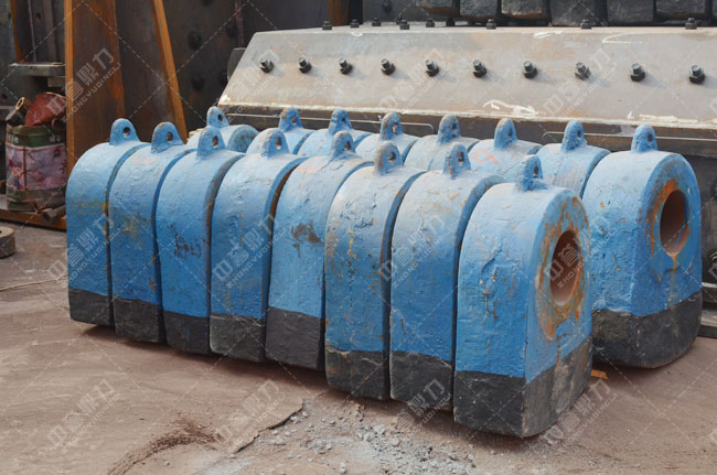選擇錘頭材質時,要了解破碎的物料組成及其硬度、粒度、尖角銳度、水分等。物料硬度越高,對錘頭材質的硬度要求越高;而物料塊度越大,對其韌性要求越高。
