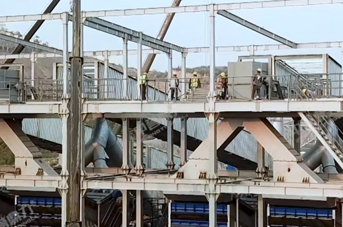 整個(gè)組裝式篩分結(jié)構(gòu)由振動(dòng)篩主機(jī)、振動(dòng)篩框架、樓體鋼構(gòu)、振動(dòng)篩附件、電動(dòng)提升機(jī)構(gòu)、巡檢廊道等部分組成,振動(dòng)篩由振動(dòng)篩框架支撐,振動(dòng)篩附件由樓體鋼構(gòu)支撐,樓體鋼構(gòu)和振動(dòng)篩附件不參與振動(dòng),使樓體鋼構(gòu)的強(qiáng)度和穩(wěn)定性更高。