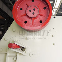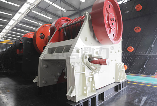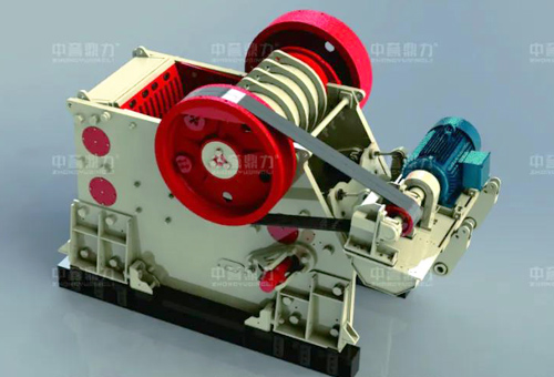 顎式破碎機工作原理簡單,主要通過動靜顎相互擠壓完成物料破碎,皮帶和皮帶輪在電動機驅(qū)動下工作,偏心軸帶動動顎上下運動,當(dāng)動顎向上時,肘板和動顎夾角變大,這時動顎板會靠近固定顎板擠壓物料,達到完成破碎的目的;當(dāng)動顎向下時,肘板和動顎夾角變小,動顎離開固定顎板,物料下落,從下方排料口排出機腔。