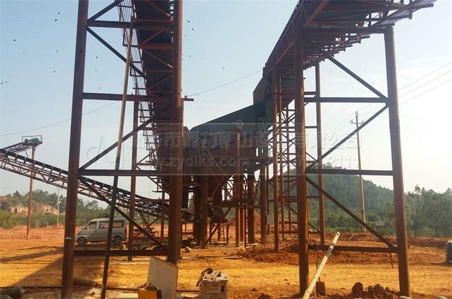從上時產(chǎn)800噸的砂石生產(chǎn)線的圖中我們可以看到,此條生產(chǎn)線上采用較大的進料口,可以一次容納較多的物料,并且公司不斷設(shè)計防護裝置,可以物料外溢,在入料環(huán)節(jié)將生產(chǎn)線整體產(chǎn)量提高。