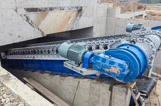 01、礦石通過板喂機(jī)進(jìn)入重錘破進(jìn)行初級(jí)破碎;