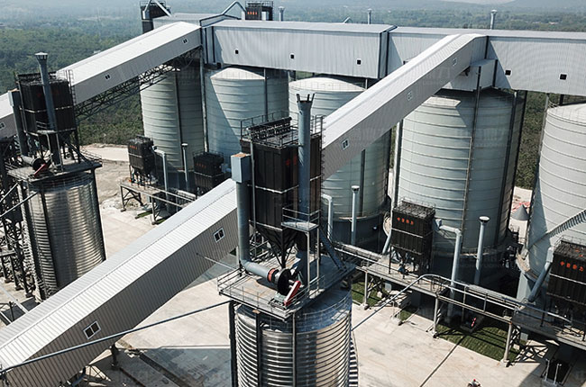 特點(diǎn)二:成品料分別儲(chǔ)存于5座圓形儲(chǔ)料倉(cāng)內(nèi),各倉(cāng)底均設(shè)有自動(dòng)裝車系統(tǒng)和稱重系統(tǒng);