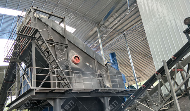 原料經(jīng)皮帶輸送機(jī)從雙轉(zhuǎn)子制砂機(jī)ZSJ0808上方落入機(jī)腔進(jìn)行破碎,破碎后的物料經(jīng)一條皮帶輸送機(jī)送到一臺3YKZ2060振動篩進(jìn)行篩分,篩分出5mm和小于3.8mm兩種成品砂,大于5mm的被一條返料輸送帶返回到制砂機(jī)進(jìn)行再次加工,形成一個(gè)閉路循環(huán)。