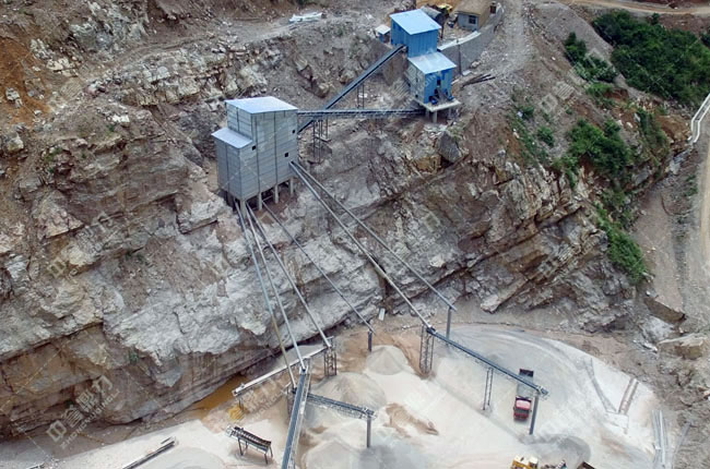 利用地形落差,破碎篩分后的成品料經(jīng)過管道直接落到成品料堆,節(jié)省輸送帶方面的投資;