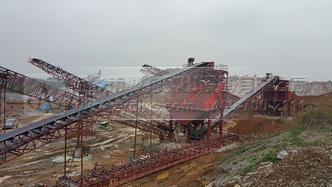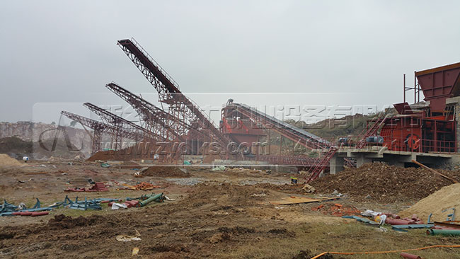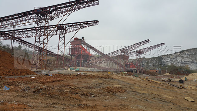 時產500噸石灰石砂石骨料生產線:PCZ1615重型錘式破碎機、ZGC1550振動給料機、2YK2460振動篩*2臺等等