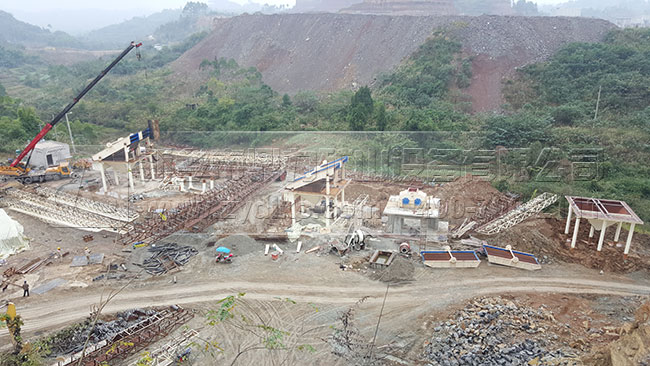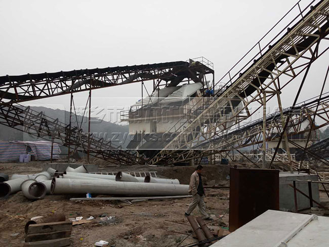 此條時(shí)產(chǎn)600噸砂石料生產(chǎn)線主要包括2臺(tái)重錘破、11臺(tái)篩分設(shè)備、2臺(tái)ZSJ1218制砂機(jī),并且配備有完備的中轉(zhuǎn)倉(cāng)和環(huán)保除塵設(shè)備,設(shè)備產(chǎn)能是比較大,預(yù)計(jì)設(shè)計(jì)的產(chǎn)能是500噸,在實(shí)際的生產(chǎn)中達(dá)到了600-700噸,生產(chǎn)效果良好。