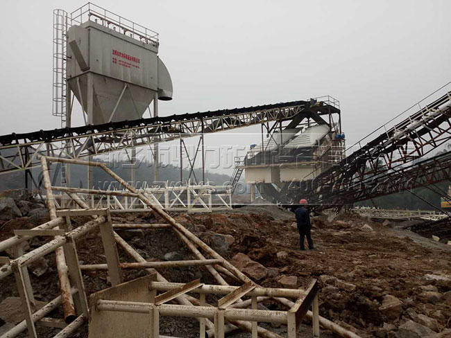 時(shí)產(chǎn)600噸砂石料生產(chǎn)線除了在生產(chǎn)規(guī)模上不斷提高生產(chǎn)產(chǎn)量之外,還采取多重環(huán)保措施,在采礦區(qū)和運(yùn)輸?shù)缆窞⑺缐m,對(duì)路面和上山道路進(jìn)行了硬化,破碎站采用封閉布袋除塵器,除塵處理達(dá)標(biāo)后再進(jìn)行排放,建設(shè)封閉式大棚,進(jìn)一步減少粉塵污染。生產(chǎn)環(huán)境得到了大大優(yōu)化。