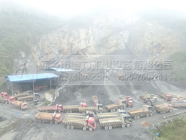 此條石子生產(chǎn)線主要是將當?shù)氐氖沂、青石破碎成我們需要的石子粒度。由于石灰石和青石的硬度低,腐蝕小,容易破碎,我們聽取了廠家建議,采用重錘破(PCZ1615型號)進行石料粗碎兼整形,它每小時的產(chǎn)量在500-800噸之間,過了我們的預期。與采用顎式破碎機相比,重錘破更加節(jié)能,粒型方面也更理想。