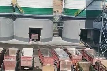 視頻中為中譽(yù)鼎力車間入口。一輛貨車正在緩緩倒車進(jìn)入車間準(zhǔn)備裝載設(shè)備。車間存放的為中譽(yù)鼎力建造的礦山設(shè)備。