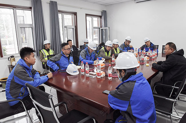 售后服務(wù)團(tuán)隊(duì)在會(huì)議室與生產(chǎn)線負(fù)責(zé)人王總溝通了項(xiàng)目建設(shè)的具體情況后,來(lái)到現(xiàn)場(chǎng)查看施工狀況,并囑咐公司安裝隊(duì)精良作業(yè),施工安裝的質(zhì)量和工期。