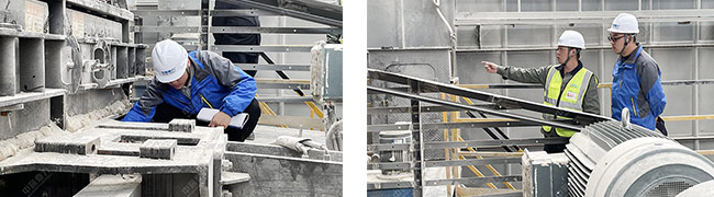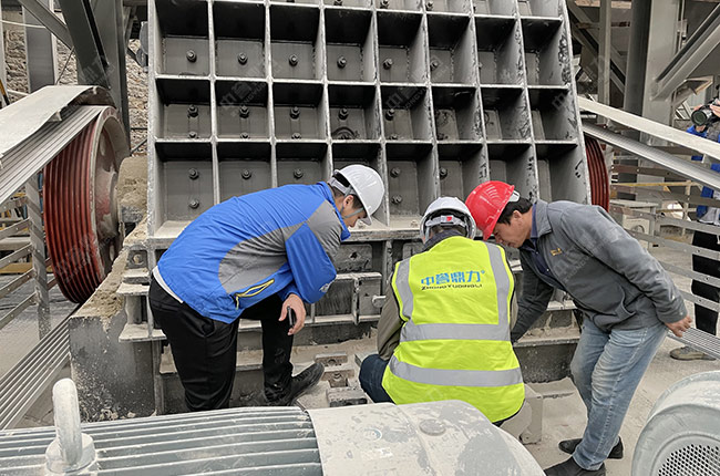 隨后,我們來到時(shí)產(chǎn)800到1000噸碎石生產(chǎn)線現(xiàn)場對設(shè)備進(jìn)行實(shí)地查看。每一顆螺絲、每一個(gè)彈簧、每一處設(shè)備間隙、每一塊襯板、每一個(gè)配件的尺寸、垂直度,售后服務(wù)人員都檢查得格外仔細(xì)。